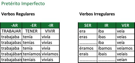 Ejemplo del uso de verbos irregulares (en este caso los verbos IR, SER y VER) dentro de la estructura del pretérito imperfecto: